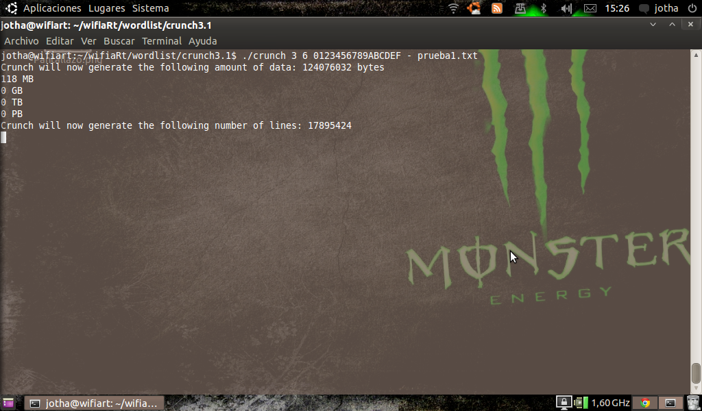 Como crear una wordlist puede hacer que ocupemos todo nuestro disco duro, tiene una opciín con la cual podemos crear varios archivos del tamaíño que le especifiquemos: