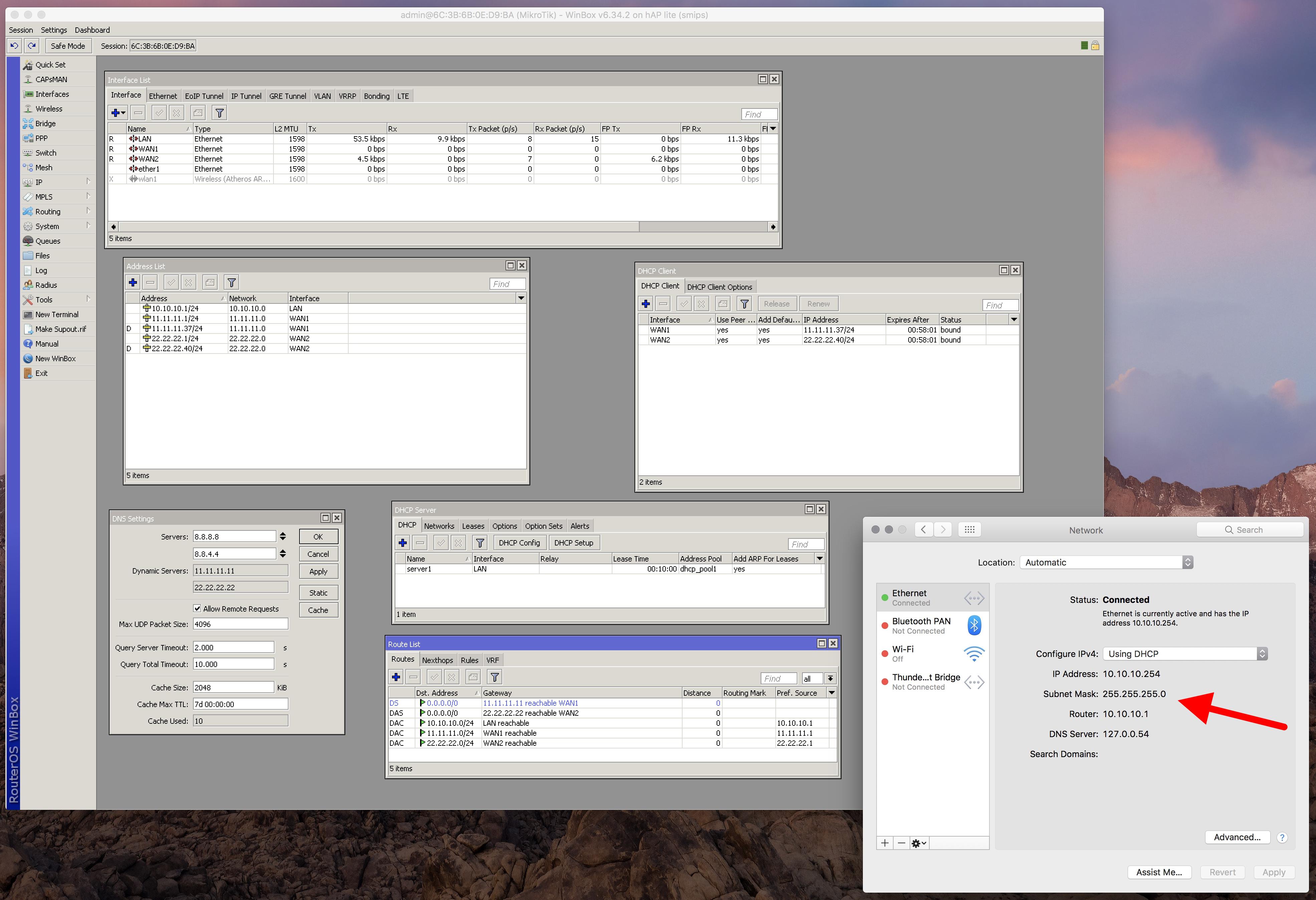 add address=22.22.22.1/24 interface="WAN2" network=22.22.22.0